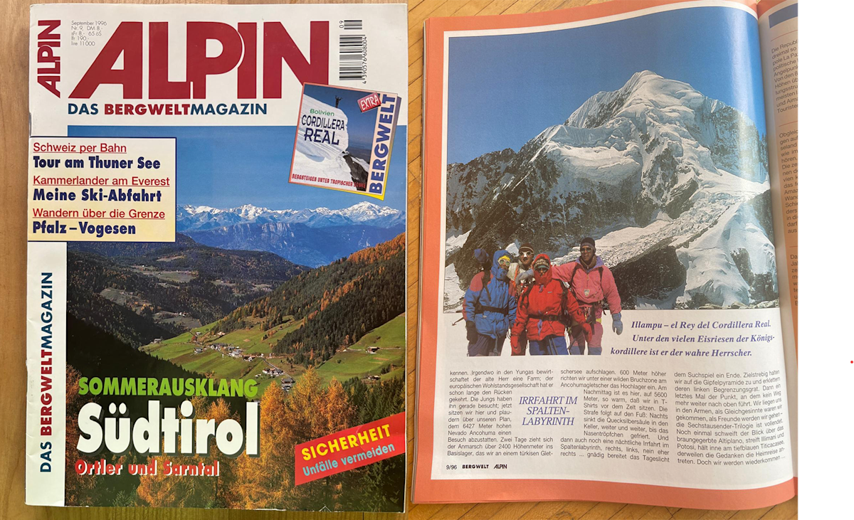 Ja, sehr gut sogar. Das war 1996 eine Reportage über eine Reise nach Bolivien, bei der wir mehrere Sechstausender bestiegen haben. Für mich war das etwas ganz Besonderes – nicht nur bergsteigerisch, sondern auch journalistisch. Plötzlich war ich nicht mehr nur Lektor, sondern konnte selbst Geschichten erzählen.
